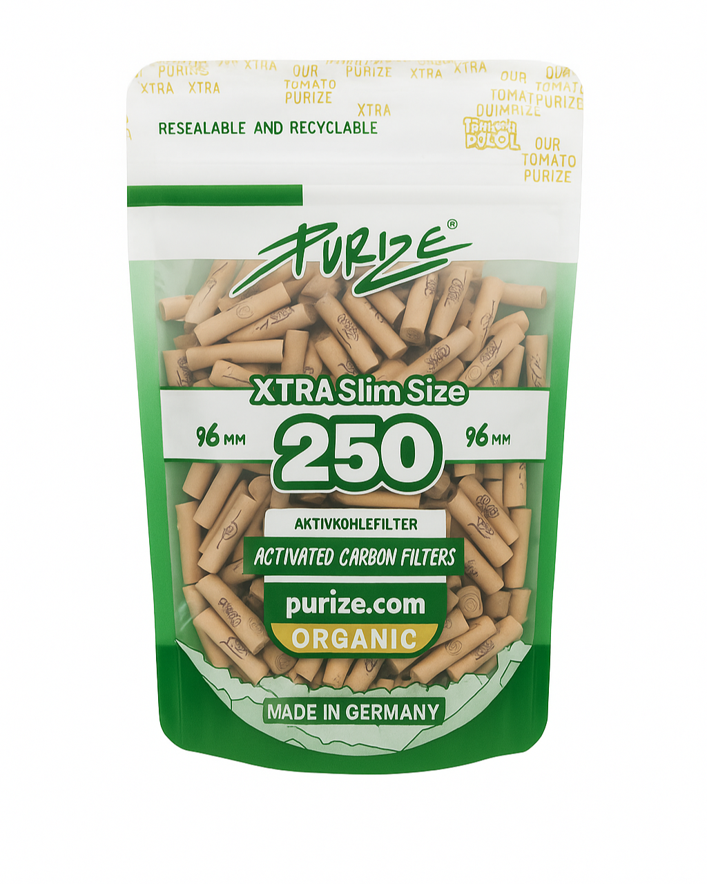 250er Beutel PURIZE XTRA Slim Aktivkohlefilter (⌀ 5,9 mm). Made in Germany.