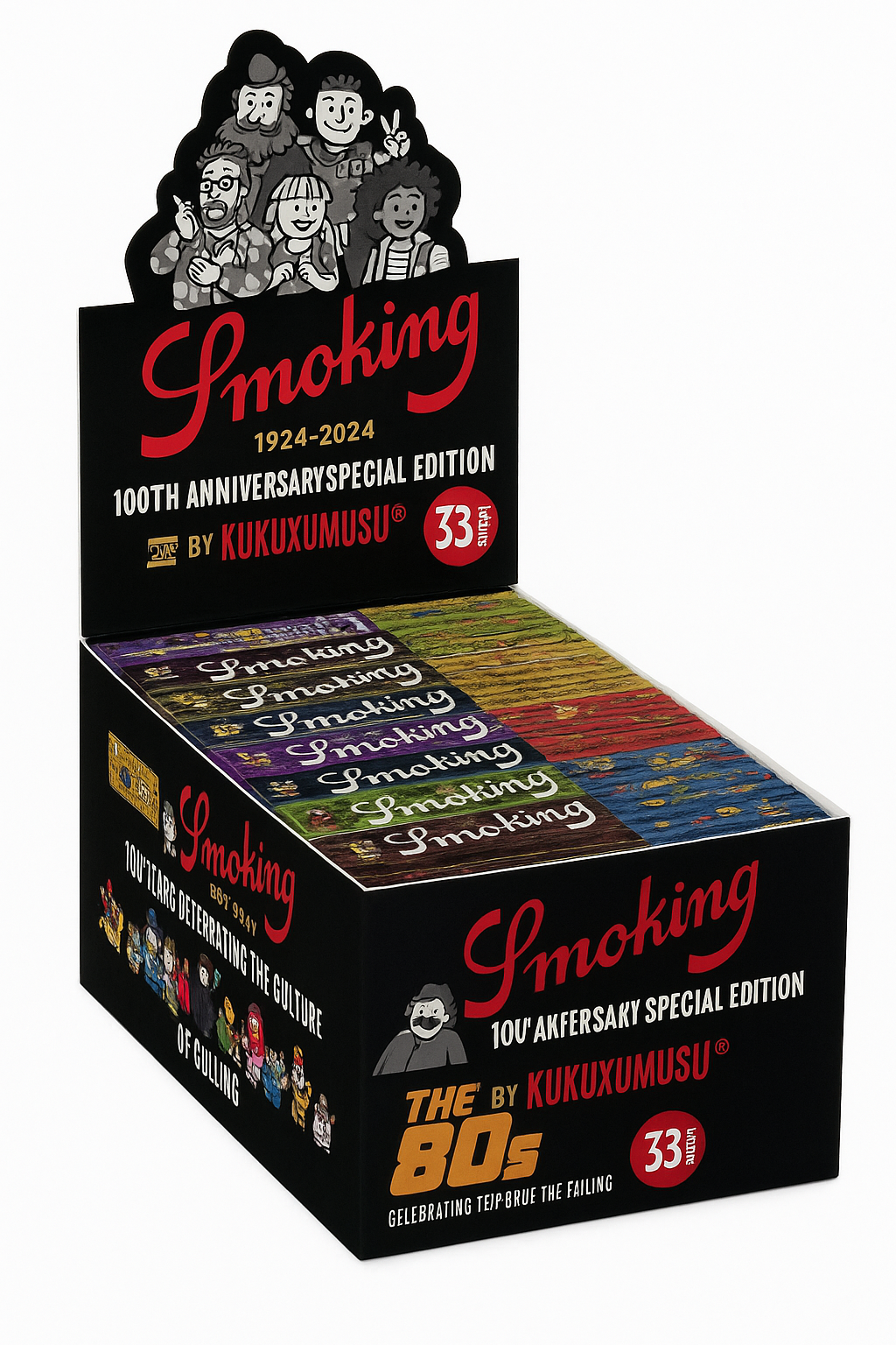 Limitierte 100th Anniversary Edition im Kukuxumusu Design. King Size Blättchen mit individuellem Stil. Je 33 Blatt